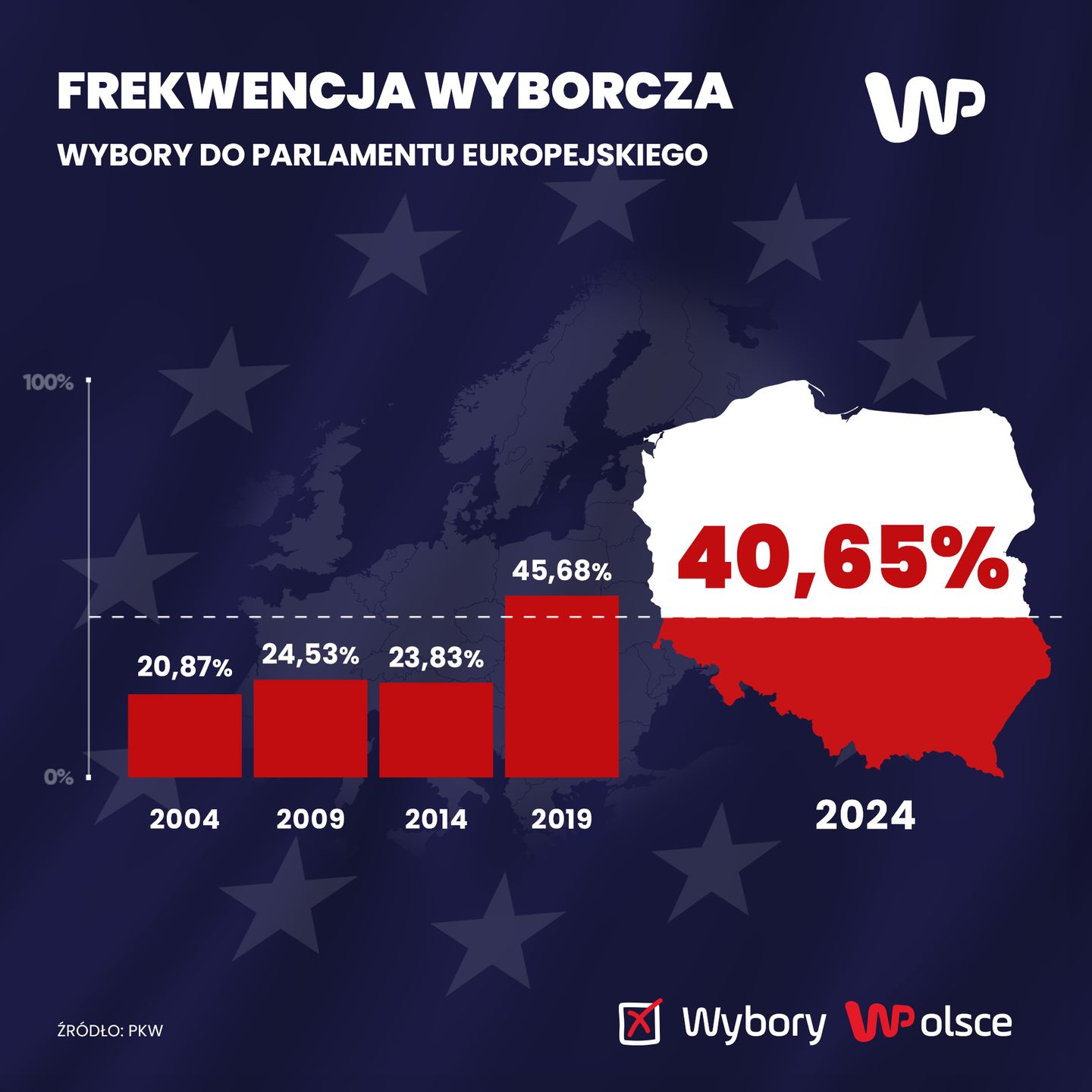 W 2019 roku frekwencja wyniosła - 45,68 proc., w 2014 - 23,83 proc., a w 2009 - 24,53 proc. W pierwszych wyborach do PE w Polsce, które odbyły się w 2004 roku, zagłosowało łącznie 20,87 proc. elektorów.