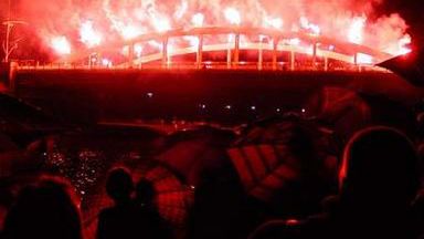 To było pół godziny, które na długo pozostanie poznaniakom w pamięci, także dlatego, że odbywało się w strugach deszczu. Nie przeszkodziło to jednak i nad Wartą stały tłumy. Jak zwykle Strefa Ciszy przygotowała wszystko z ogromnym rozmachem. Ludzie otwierali buzie ze zdziwienia, kiedy na moście pojawił się...słoń. Były światła, muzyka w wykonaniu Reprezentacyjnej Orkiestry Kolejarzy im. M. Kurpińskiego i Orkiestry Miasta Poznania przy MPK, kajakarze, taternicy z Klubu Taternictwa Jaskiniowego. bardziej jednak facynowało pożegnanie starego Rocha. To z niego przez parę minut buchały ognie sztuczne, które rozświetlały niebo.