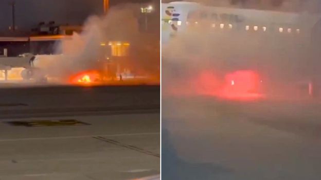 Niespodziewanie zapaliła się taśma transportowa używana podczas załadunku bagażu. Jak widać na nagraniach świadków, ogień pojawił się tuż przy kadłubie i skrzydle samolotu, a dym szybko zaczął przedostawać się do kabiny.