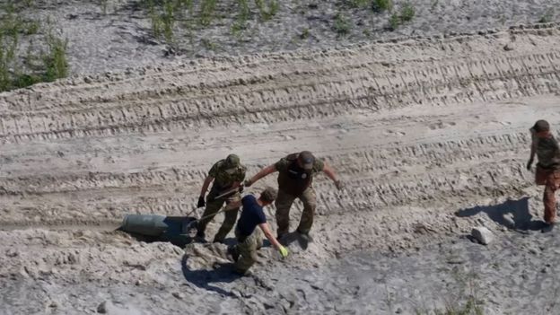 Ukraińscy saperzy mają pełne ręce roboty na terenach odbitych przez ukraińskie wojsko od Rosjan. W środę (1 czerwca), tylko w tym jednym dniu udało im się zabezpieczyć i zdetonować ponad 150 niewybuchów w obwodzie kijowskim. Niektóre bomby były tak dużego kalibru, że musiały być wyciągane przy pomocy ciężkiego sprzętu. Saperzy detonują niewybuchy na terenie jednej z dawno zamkniętych kopalni piachu. Ołeksij Kułeba, gubernator obwodu kijowskiego powiedział we wtorek (31 maja) w ukraińskiej telewizji, że rozminowywanie potrwa z pewnością całe lata.