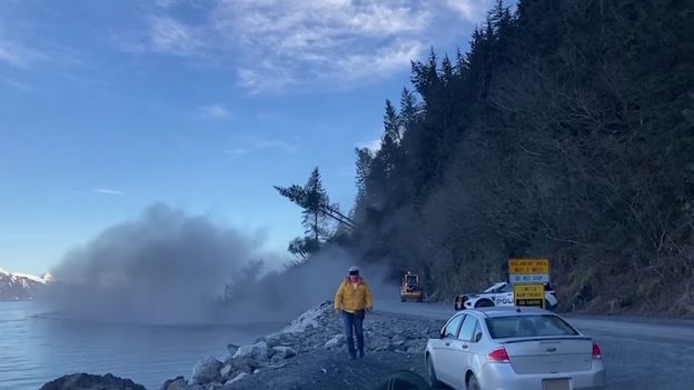 Na drodze prowadzącej do miasta Seward na Alasce, miało miejsce ogromne osuwisko, które zablokowało całkowicie przejazd. Droga znajdująca się na południu od miasta przebiega między zatoką a pasem lasu na stromym wzniesieniu. W sobotę (7 maja) zwaliło się na nią drzewo, przez co utrudniony był przejazd. Zarządca drogi przybył na miejsce z ciężkim sprzętem w poniedziałek (9 maja), w celu oczyszczenia drogi. Gdy zaczęto usuwać drzewo oraz część gruzu, nagle pracownicy zaczęli słyszeć trzaski na wzniesieniu. Szybko podjęto decyzję o wycofaniu się. Po chwili na miejscu utworzyło się ogromne osuwisko, które miało długość 61 metrów i szerokość 91 metrów. Razem z gruzem na drogę zwaliło się wiele drzew ze zbocza. Na szczęście robotnicy uciekli w porę i nic nikomu się nie stało. Zdaniem Janette Bower z miejskiego ratusza w Seward, usuwanie skutków osuwiska zając może nawet 2 tygodnie. Droga została całkowicie zablokowana i mieszkańcy Seward mają ogromny problem z wydostaniem się z miasta. Całą sytuację udało się nagrać jednemu z mieszkańców pobliskiej miejscowości Lowell Point, który chciał dojechać drogą do Seward.