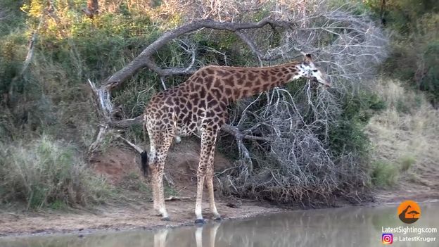 W prywatnym rezerwacie dzikich zwierząt Kapama w RPA zarejestrowano wyjątkowe zjawisko. 28-letni przewodnik terenowy, Eben Rhode, natknął się na stojąca przy wodopoju żyrafę próbującą napić się wody. Nie byłoby w tym nic dziwnego gdyby nie fakt, że zwierzę miało przedziurawiony policzek, a woda, którą chciało pić, wylewała się przez dziurę z powrotem do rzeki. - Emocje rosły, ponieważ nie wiedzieliśmy, czy w tym momencie być smutnym, czy po prostu obserwować naturę. Nie mogliśmy uwierzyć, że zwierzę, które musi tak bardzo cierpieć, wciąż ma moc i odporność, by walczyć i przetrwać ciosy, jakie dostaje od życia - wspomina Eben Rhode.