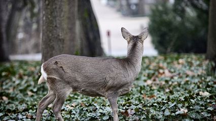 Sarna mieszkająca w Parku Łazienkowskim w centrum Warszawy.