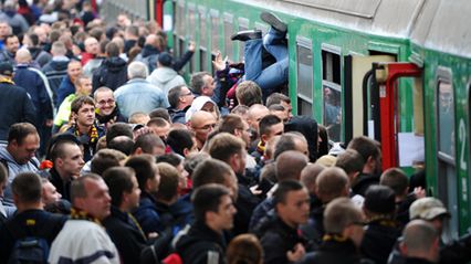 Prawie półtora tysiąca fanów Dumy Pomorza wyjeżdża z Dworca PKP Szczecin Główny na mecz z Lechem Poznań.