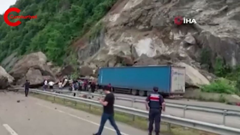 Artvin'de heyelan meydana geldi: TIR şoförleri kayalıkların altında geçiş sırasını beklemek zorunda - Dailymotion Video