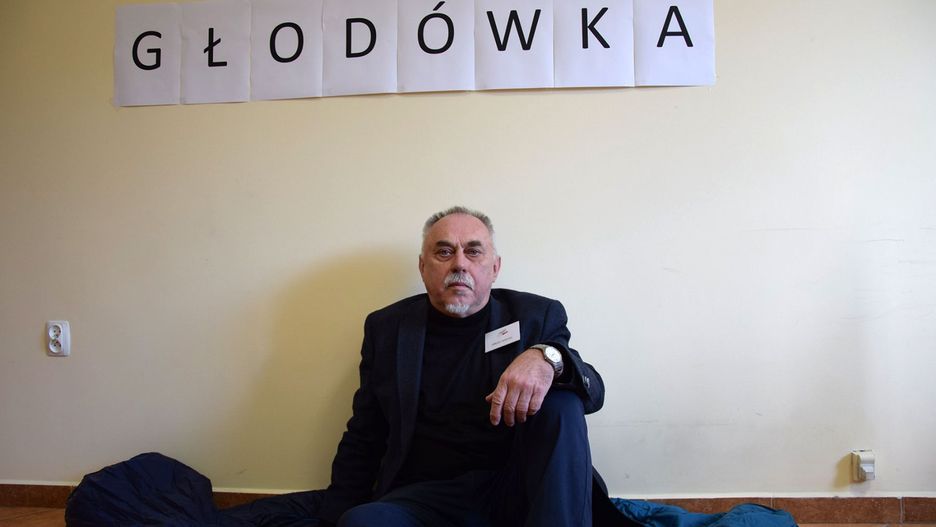 "Rozpoczynam protest głodowy, mam śpiworek i ręczniczek. Zamieszkam tutaj u pana dyrektora na znak protestu, że nie mogą być tak odebrane nasze prawa. Walczę o prawa wszystkich obywateli. Walczę o to, by było normalnie" - zapowiadał poseł Janusz Sanocki przed rozpoczęciem wtorkowego protestu w gmachu Urzędu Wojewódzkiego w Opolu, gdzie mieści się delegatura KBW.