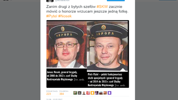 Michał Rachoń z TVP INFO zamieścił w sieci zdjęcia, które przedstawiają gen. Pytla oraz jego poprzednika gen. Janusza Noska, którzy na głowie noszą czapki wojskowe z napisami w cyrlicy. Przypomniał też, że SKW współpracowała z rosyjską Federalną Służbą Bezpieczeństwa.