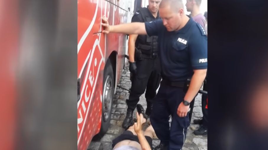 Na naagraniu widać, jak mężczyzna symuluje utratę przytomności. Jeden z policjantów sprawdza, czy z mężczyzną wszystko jest w porządku. - Niech pan mnie nie atakuje (…) Odejdź pan stąd, bo pan wygląda na bandytę – krzyczy do mundurowych pan Jan, który dodatkowo podaje im nieprawdziwe dane osobowe.