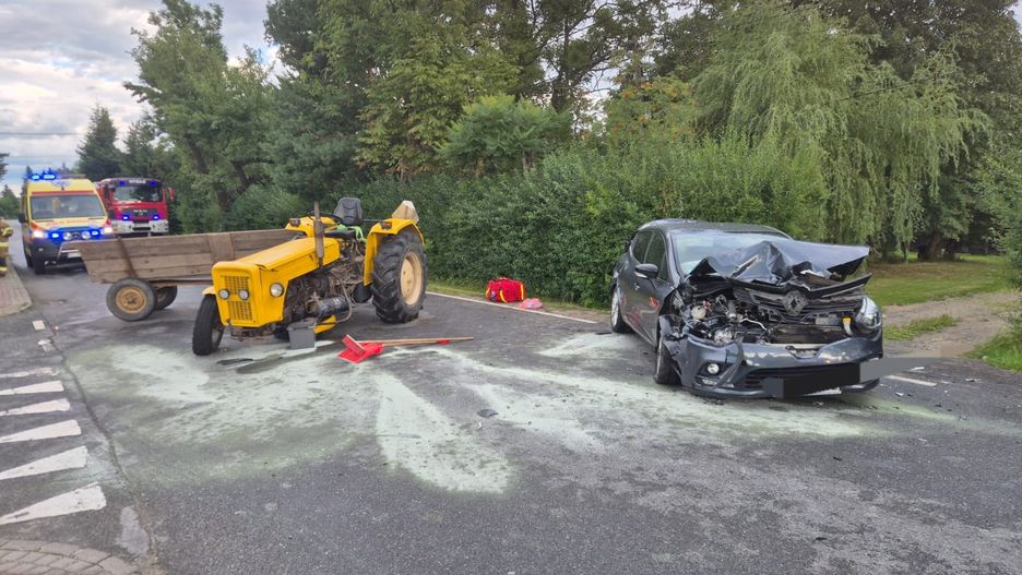 Osobówka zderzyła się z ciągnikiem. Jedna osoba w szpitalu