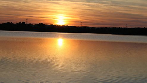Na zdjęciu: zachód słońca nad jeziorem Orle.
