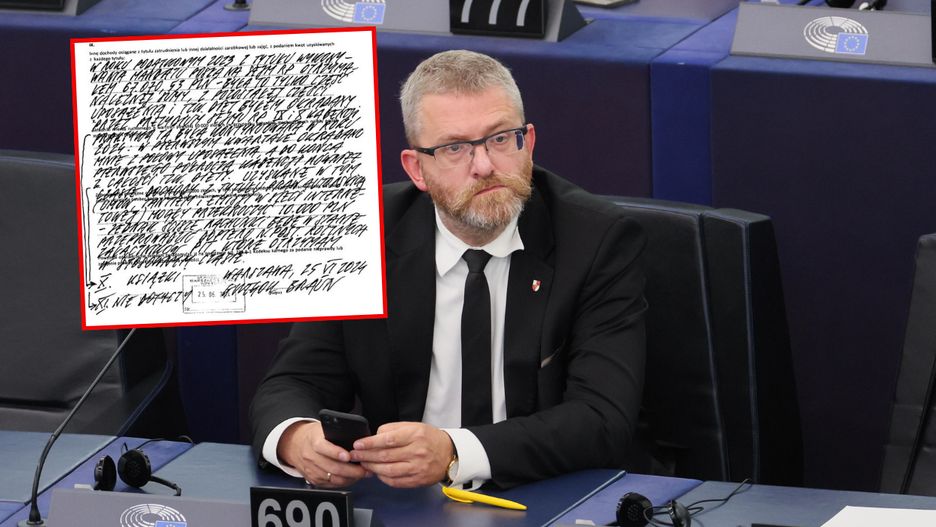 Przedstawiciel Konfederacji, a obecnie już poseł Parlamentu Europejskiego Grzegorz Braun wypełnił woje oświadczenie majątkowe pochyłym pismem. Stawiał tylko wielkie litery.