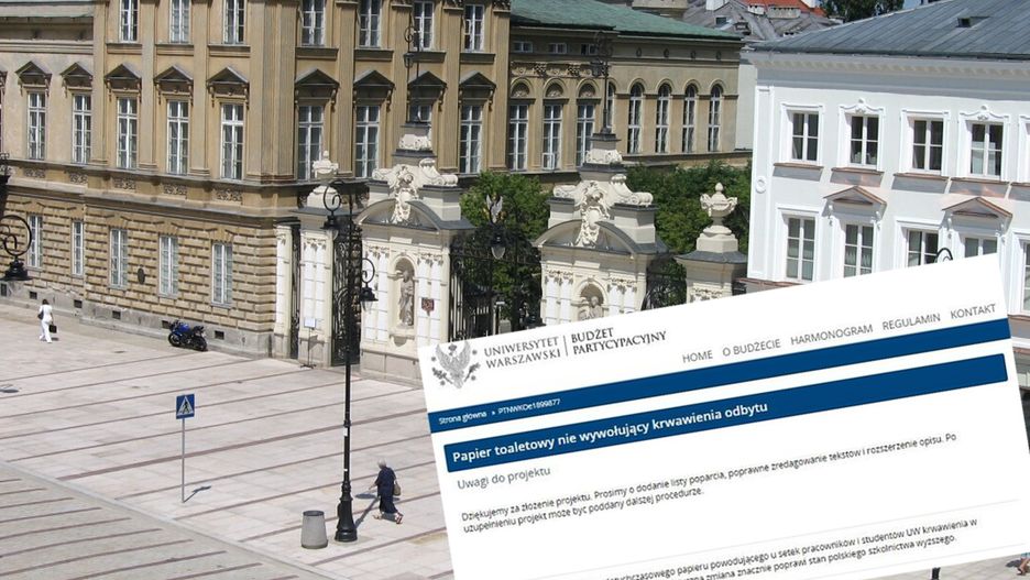Student Uniwersytetu Warszawskiego zaapelował o wprowadzenie "innowacyjnego przejścia z papieru toaletowego wywołującego krwawienie w okolicach odbytu na papier zadowalająco miękki". Koszty pokryć miałby budżet partycypacyjny uczelni i, o dziwo, zdaje się, że są na to szanse. Projekt został bowiem zatwierdzony.