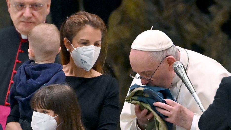 Papież Franciszek w środę otrzymał ukraińską flagę, przywiezioną z podkijowskiej Buczy, w której rosyjscy zbrodniarze dopuścili się masakry ludności cywilnej. Papież rozwinął flagę i ucałował ją. - To flaga z wojny, z tego umęczonego miasta - powiedział Franciszek.