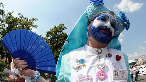 Zgodnie z hasłem na plakietce tego uczestnika parady - tak właśnie wygląda XXI-wieczna zakonnica...