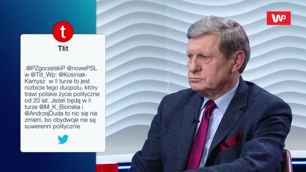 Wicemarszałek Sejmu Piotr Zgorzelski (PSL) stwierdził w rozmowie z WP, że zarówno Małgorzata Kidawa-Błónska, jak i Andrzej Duda "nie są suwerenni politycznie". Co na to Leszek Balcerowicz? - Ta wypowiedź jest paskudna, kłamliwa. Zamazuje zasadniczą różnicę między partią demokratyczną - PO - a PiS-em w ręku Kaczyńskiego, który gwałci podstawy demokracji - komentował w programie "Tłit". Balcerowicz podkreślił, że kandydatka PO budzi u niego zaufanie pod względem uczciwości i przyzwoitości. - Myślę, że jest osobą, która wie, co najważniejsze dla Polski - wskazał.
