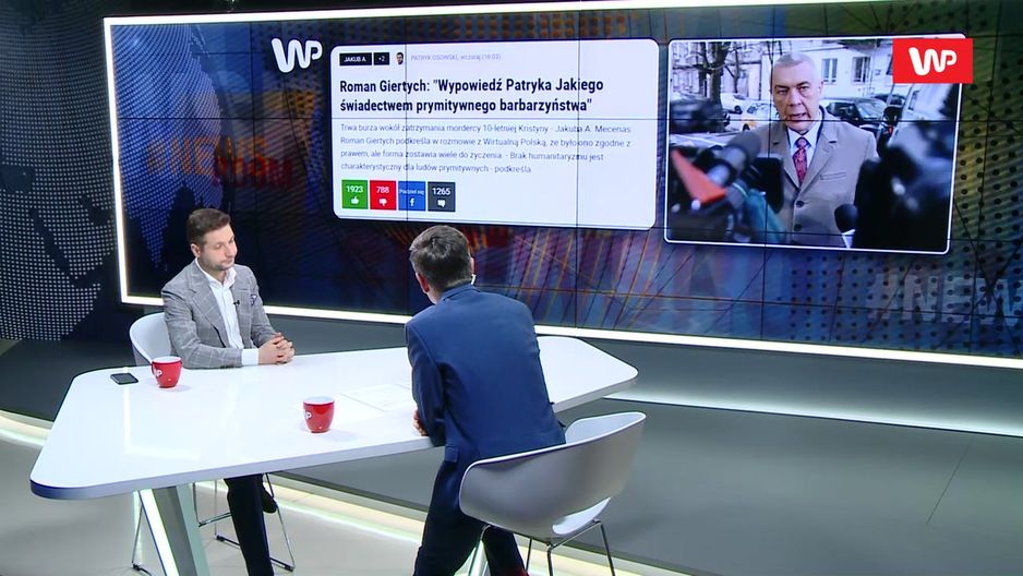 - Brak humanitaryzmu jest charakterystyczny dla ludów prymitywnych – tak zachowanie policjantów wobec Jakuba A., oskarżonego o morderstwo 10-letniej Kristiny, ocenił Roman Giertych. Do jego słów w programie #Newsroom odniósł się Patryk Jaki. – Pewnie gdyby Roman Giertych był ministrem sprawiedliwości, wysłałby do tego pana orkiestrę. Policjanci by zapytali: "przepraszam, panie przestępco, czy możemy wejść? Czy przypadkiem czegoś pan nie potrzebuje? Może polarek panu kupić, bo będzie panu za zimno" - powiedział europoseł, były wiceminister sprawiedliwości.