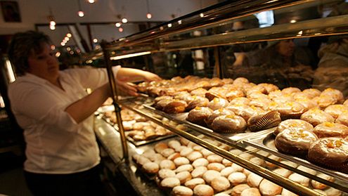 Warszawa, 19.02.2009r. Tłusty czwartek - w cukierni Bliklego na warszawskim Nowym Świecie tłum amatorów pączków.