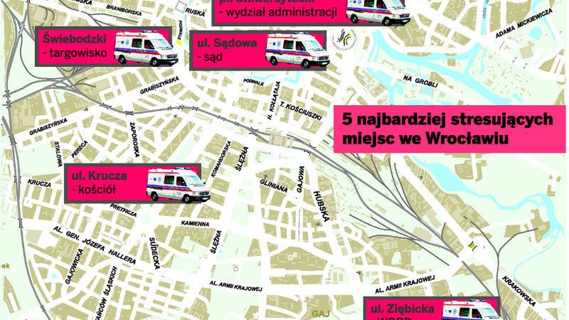 Bazar przy Dworcu Świebodzkim, plac manewrowy ośrodka ruchu drogowego przy ul. Ziębickiej, okolice pl. Uniwersyteckiego, sąd przy Podwalu oraz kościół przy ul. Kruczej - to miejsca przodujące w rankingu dyspozytorów Centrum Powiadamiania Ratunkowego we Wrocławiu. Właśnie pod te adresy najczęściej wzywamy lekarzy, bo robi się nam tam słabo lub mamy kłopoty z sercem.