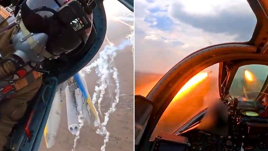 Brawurowe akcje ukraińskich pilotów Su-25. Oficjalny profil Ministerstwa Obrony Ukrainy na platformie X udostępnił nagranie z kokpitów pilotów myśliwców, którzy za dnia wykonali kilka spektakularnych ataków na rosyjskie pozycje w Ukrainie. Na materiale można zauważyć, jak piloci wykonują ryzykowne manewry kilka razy przelatując tuż nad ziemią. Widać też kilka momentów z uderzeń rakietowych w cele zlokalizowane na wschodnim odcinku frontu w Ukrainie. Siły Powietrzne Kijowa aktywnie wykorzystują myśliwce szturmowe Su-25, zwane też "Frogfoot", jako kluczowy element wsparcia powietrznego w walkach z Rosjanami. Su-25 to maszyny przeznaczone głównie do ataków na cele naziemne. Wyposażone Su-25 w rakiety niekierowane, bomby i działka pokładowe, skutecznie niszczą fortyfikacje, pojazdy opancerzone i konwoje logistyczne Rosjan.