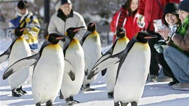 Władze ogrodu zoologicznego nakazały wyprowadzanie pingwinów na zaśnieżony półkilometrowy wybieg dwa razy dziennie - powiedział rzecznik zoo Tetsuo Yamazaki.