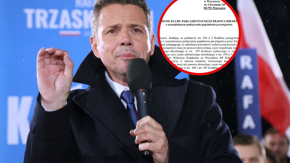 "Niniejszym, działając na podstawie art. 304 § 2 Kodeksu postępowania karnego, zawiadamiamy o uzasadnionym podejrzeniu popełnienia przestępstwa przez Telewizję Polską S.A. w likwidacji, polegającego na udzieleniu komitetowi wyborczemu korzyści majątkowej o charakterze niepieniężnym innej niż prawem dozwolonej, czym wypełnione zostały znamiona czynu zabronionego określonego w art. 507 Kodeksu wyborczego w zw. z art. 84 § 1 Kodeksu wyborczego oraz czynu zabronionego określonego w art. 296 § 3 Kodeksu karnego oraz przez Komitet Wyborczy Kandydata na Prezydenta RP Rafała Trzaskowskiego polegającego na przyjęciu w imieniu komitetu wyborczego korzyści majątkowej o charakterze niepieniężnym innej niż prawem dozwolone, czym wypełnione zostały znamiona czynu zabronionego określonego w art. 496 i art. 507 Kodeksu wyborczego w zw. z art. 84 § 1 Kodeksu wyborczego" - brzmi treść zawiadomienia.