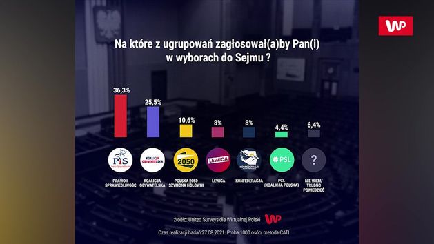 Prawo i Sprawiedliwość może liczyć na 36,3 proc. poparcia, czyli o ponad 2 pkt proc. więcej w porównaniu z notowaniami z początku sierpnia. Na KO zagłosowałoby 25,5 proc. respondentów. To spadek o ponad 2 pkt proc. Tak wynika z najnowszego sondażu United Surveys dla Wirtualnej Polski. - Mam wrażenie, że PiS żeruje na takiej najgorszej narracji, czyli lęku Polaków przed uchodźcami. Już raz PiS kiedyś na tej narracji otrzymywał bardzo dobre wyniki i w tej chwili znów chce tą kartą zagrać - mówi Katarzyna Lubnauer z KO. Więcej w materiale wideo.