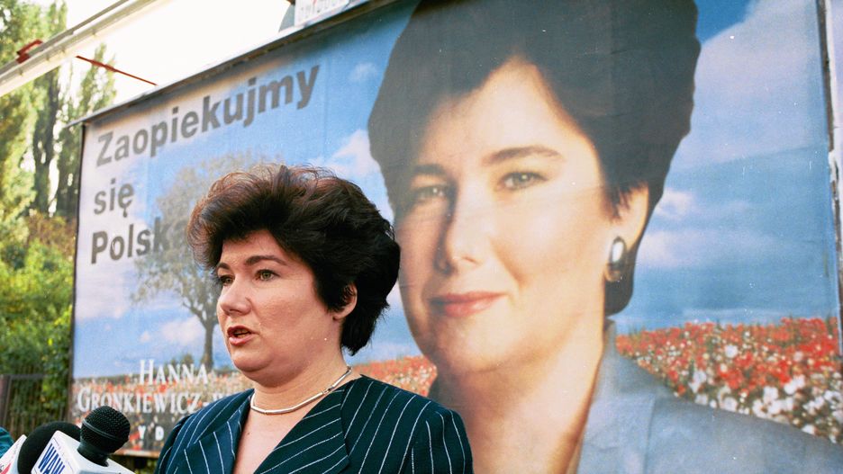 Na zdjęciu plakat wyborczy z jej podobizną dumnie prezentują m.in. ówczesna wiceprzewodnicząca SLD Joanna Senyszyn i lider tej partii Leszek Miller. ZOBACZ DALEJ ->