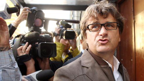 Poseł PO Janusz Palikot w drodze na posiedzenie sądu koleżeńskiego Platformy Obywatelskiej. Koleżeński sąd partyjny przeniósł sprawę Janusza Palikota na październik. W trakcie posiedzenia stwierdzono, że wniosek w sprawie Palikota jest niekompletny.
