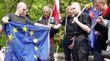 Manifestanci wznosili okrzyki: "Miller, Kwaśniewski dwa brukselskie pieski", "Tu jest Polska" i "Śląsk Opolski zawsze polski". Przed podpaleniem flagi unijnej krótko ostrzyżeni młodzi ludzie wycierali sobie nią buty krzycząc: "Unijna ściera dobrze buty wyciera".