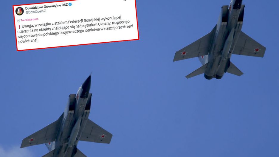 "Uwaga, w związku z atakiem Federacji Rosyjskiej wykonującej uderzenia na obiekty znajdujące się na terytorium Ukrainy, rozpoczęło się operowanie polskiego i sojuszniczego lotnictwa w naszej przestrzeni powietrznej" - podano w komunikacie.