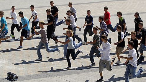 Przed katowickim Spodkiem odbył się Ogólnopolski Zlot Jumperów - tancerzy, wykonujących ewolucje oparte głównie na podskokach w rytm dynamicznej muzyki.