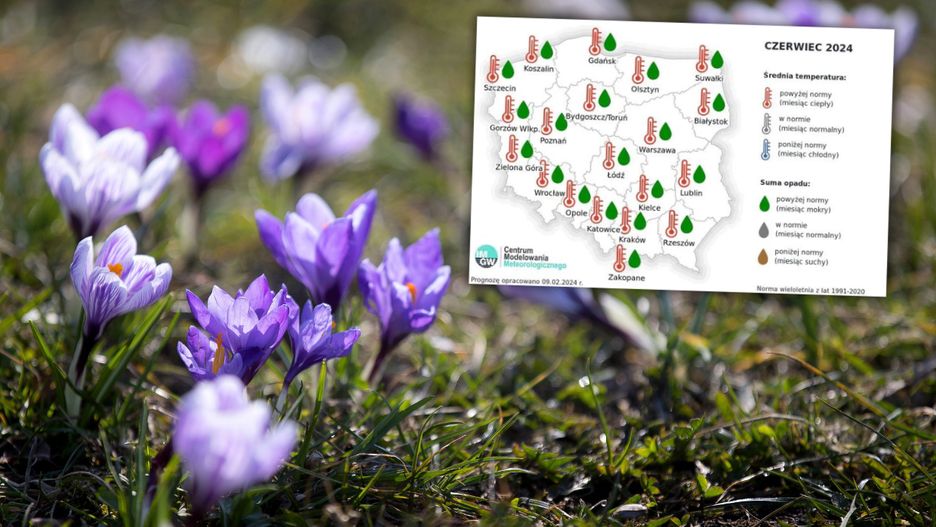 Jak wynika z prognoz długoterminowych, w czerwcu 2024 może nastąpić kolejny zwrot. W szóstym miesiącu roku zarówno średnia miesięczna temperatura, jak i średnia suma opadów mają bowiem kształtować się powyżej norm wieloletnich.