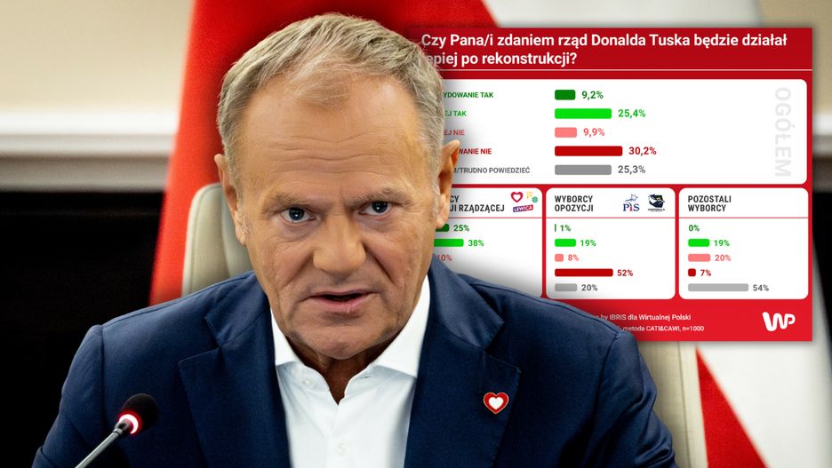 Rekonstrukcja rządu Donalda Tuska nie budzi jednak entuzjazmu wśród Polaków - wynika z sondażu United Surveys przeprowadzonego dla Wirtualnej Polski. Choć wyborcy koalicji rządzącej wykazują pewien optymizm, to w skali ogólnokrajowej więcej osób spodziewa się, że zmiany nie przyniosą poprawy.