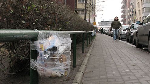 Kosz na śmieci na ul. Siennej, Warszawa