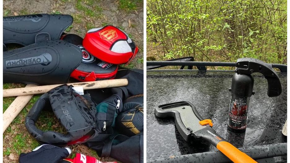 - W samochodach znaleziono rękawice do walk, ochraniacze, maczetę i gaz pieprzowy.