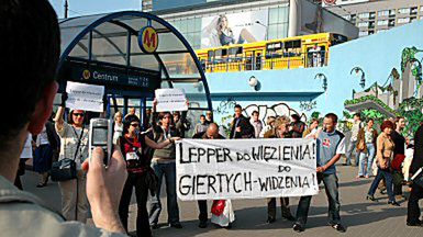Warszawa, godz. 17.00. Nikt z przechodniów, wchodzących i wychodzących ze stacji metra Centrum, nie spodziewał się, że tego dnia wydarzy się coś, co będzie odróżniało codzienny, rytualny powrót z pracy do domu. „Flashmobowcy” przygotowali niespodziankę - spontaniczny protest przeciwko obecności w rządzie Andrzeja Leppera i Romana Giertycha.