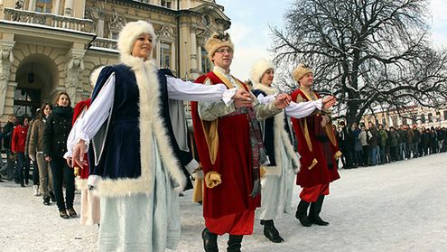 Nowy Sącz, 02.02.2010. 1600 maturzystów z 14 sądeckich szkół zatańczyło poloneza na nowosądeckim rynku.