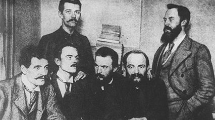 Na zdjęciu: przywódcy Polskiej Partii Socjalistycznej w Londynie. Od lewej: Ignacy Mościcki, Bolesław Jędrzejowski, Józef Piłsudski, Aleksander Dębski; stoją Bolesław Miklaszewski i Witold Jodko-Narkiewicz (1896 r.).