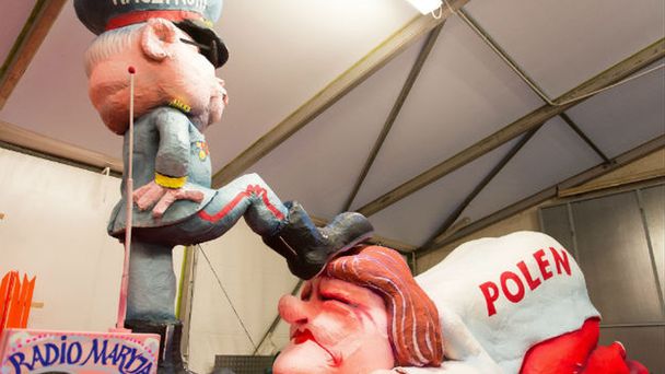 Co roku w ostatni poniedziałek karnawału ulicami Duesseldorfu przechodzi barwna parada, której główną atrakcją są ogromne figury przedstawiające polityków i osoby publiczne. W tym roku jedną z nich była postać Jarosława Kaczyńskiego w generalskim mundurze, który trzyma but na głowie klęczącej, pobitej kobiety, podpisanej jako "Polska". Obok Kaczyńskiego postawiono różowe radio z napisem "Radio Maryja".
