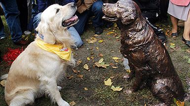 W Warszawie na Polu Mokotowskim odsłonięto Pomnik Szczęśliwego Psa. Pomnik powstał z inicjatywy redaktor naczelnej czasopisma "Cztery Łapy", Doroty Szulc-Wojtasik. Rzeźba przedstawia Lakotę - golden retrivera, który na co dzień, wraz ze swoją opiekunką bierze udział w dogoterapii.