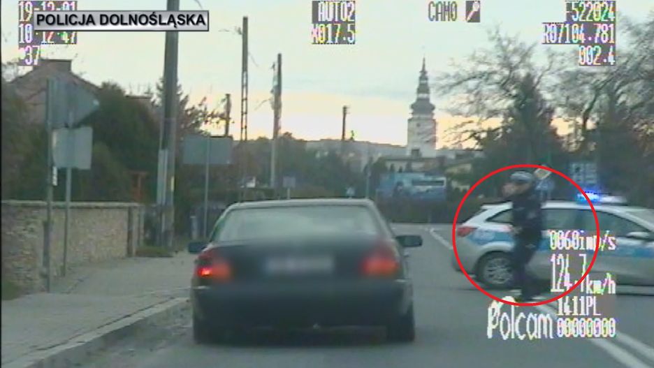 Początkowo mężczyzna współpracował i zgodnie z poleceniem zatrzymał auto. Po chwili jednak ruszył do przodu i zaczął gwałtownie przyspieszać. Uciekający nie reagował na dawane sygnały świetlne i dźwiękowe i zaczął przyśpieszać. Pirat drogowy uciekał przez blisko 20 kilometrów miejscowościami powiatu strzelińskiego, nie zatrzymując się również na zorganizowanej blokadzie. Tam o mały włos nie potrącił policjanta.