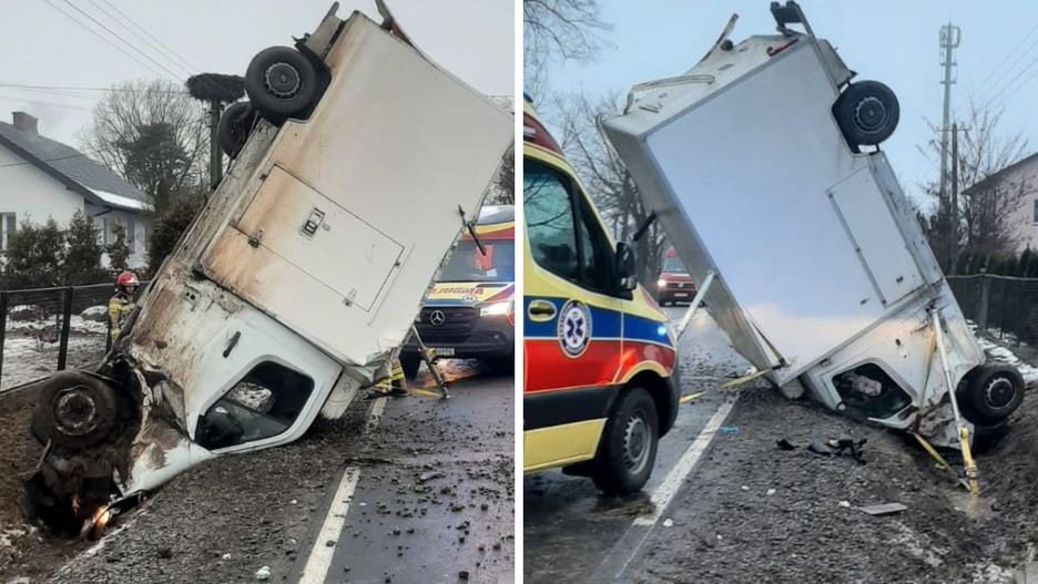 Do groźnie wyglądającego wypadku doszło w Łopaciance pod Garwolinem. Kierowca busa stracił panowanie nad pojazdem i wjechał do rowu, auto zatrzymało się w pionie. Dwie osoby trafiły do szpitala.