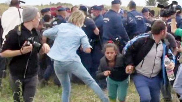 • Petra Laszlo kopała imigrantów przedzierających się przez kordon policji