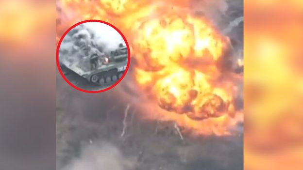 Mocne uderzenie w Rosjan w okolicach Bachmutu. Do sieci trafiło nagranie, na którym widać przerażonych wagnerowców uciekających z płonącego wozu opancerzonego BMP-1. Ukraińcy sprytnie zaplanowali całą akcję, najpierw śledząc okupantów z powietrza. Kamera drona nie opuściła Rosjan nawet na moment, dlatego ukraińska piechota otrzymała dokładne dane do przeprowadzenia ataku. Nagle w tył pancerza BMP, niedaleko zbiornika paliwa trafił pocisk artyleryjski. Pancerz uchronił załogę przed natychmiastową śmiercią, ale wagnerowcy i tak nie wiedzieli, co się dzieje. Na nagraniu widać, że cała trójka opuszcza pojazd w popłochu, a jeden z Rosjan przez chwilę zamarł w bezruchu. Kilka chwil później doszło do potężnej eksplozji, którą poprzedziła samodetonacja zgromadzonej w środku amunicji. Potężnej eksplozji towarzyszyły wielkie kule ognia i kłęby czarnego dymu - to wszystko przez wyciekające ze zbiornika BMP-1 paliwo.