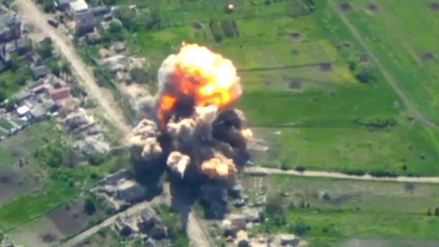 Kolejny cios wymierzony w grupę Wagnera w okolicach Bachmutu. Tym razem Ukraińcy wyśledzili skąd pada ostrzał artyleryjski i przy użyciu drona odnaleźli pozycję wagnerowców. Operator bezzałogowca przekazał dokładne współrzędne piechocie, by ta mogła przeprowadzić udany atak na okupantów. Kamera drona zarejestrowała moment potężnego uderzenia w moździerz i skład amunicji Rosjan. Na nagraniu udostępnionym przez agencję Reutera widać moment eksplozji, której towarzyszy ogromna siła, co widać w pierwszych sekundach wybuchu. Wagnerowcy nie przeżyli tego ataku, podczas gdy obrońcy Bachmutu odzyskali kolejny teren w okolicach miasta.