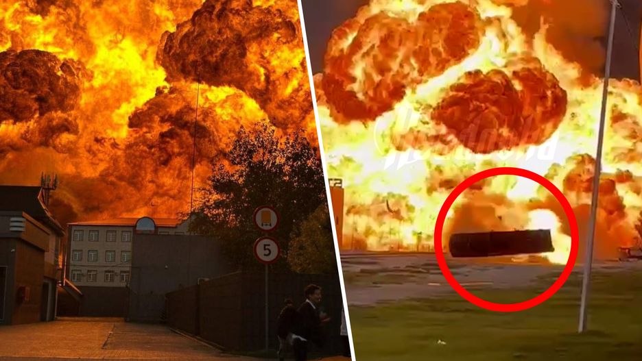 Oprócz potężnej kuli ognia na nagraniach opublikowanych w sieci widać m.in. zbiornik paliwa, który po eksplozji zamienił się w pocisk. Kilkutonowa konstrukcja wyleciała w powietrze i przeleciała ponad 300 metrów.