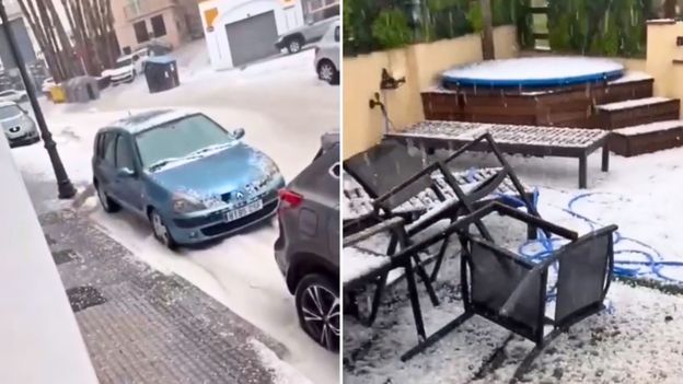 Potężne opady gradu w Hiszpanii. Na ulicach zrobiło się biało