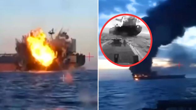 Na nagraniu można dostrzec moment ataku na dwa statki na Morzu Czarnym. Na pierwszy rzut oka wyglądało to tak, jakby Rosjanie nie spodziewali żadnego zagrożenia, co ułatwiło działanie Ukraińcom.