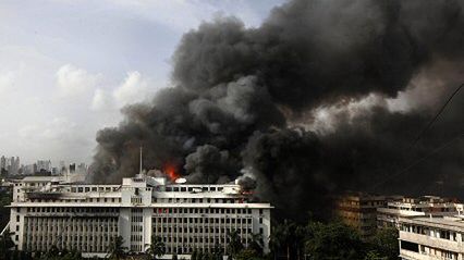 Pracownicy budynku administracji stanu Maharasztra uciekali przed czarnymi kłębami dymu przez okna. Na gzymsach czekali, aż dotrą do nich strażacy.