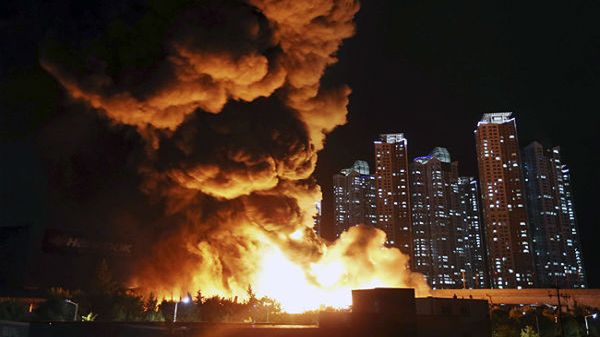 Potężny pożar fabryki w Korei Południowej